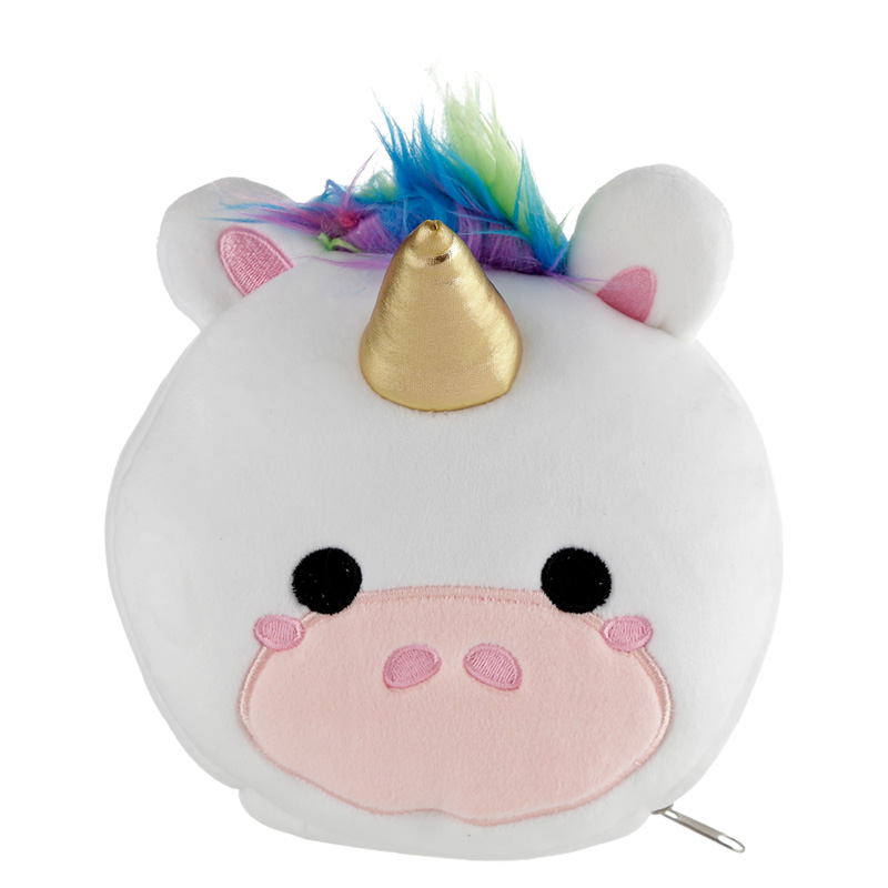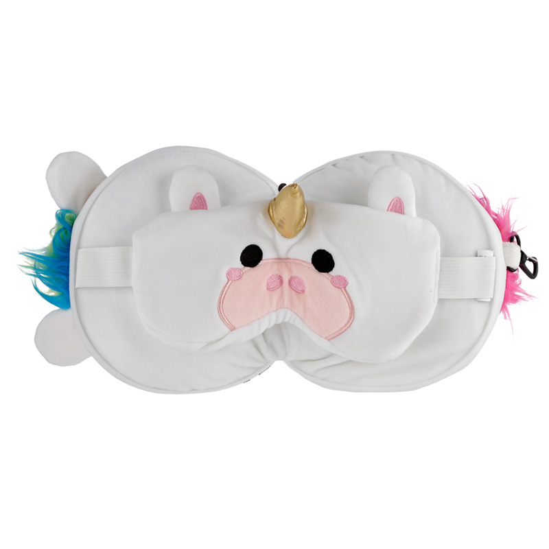 Αυτό το μαλακό και άνετο ταξιδιωτικό μαξιλάρι σε σχήμα μονόκερου κρύβει ένα πρακτικό μυστικό: μόλις ανοιχτεί, μετατρέπεται σε άνετο μαξιλάρι με ενσωματωμένη μάσκα ύπνου. Τα παιδιά το λατρεύουν για παιχνίδι και ξεκούραση, ενώ οι ρυθμιζόμενοι ιμάντες της μάσκας το κάνουν ιδανικό και για ενήλικες. Ιδανικό για ταξίδια με αεροπλάνο η αυτοκίνητο, με πρακτικό κλιπ για εύκολη μεταφορά σε τσάντες ή ζώνες. Το απόλυτο gadget για ξεκούραστα ταξίδια και άνεση παντού.