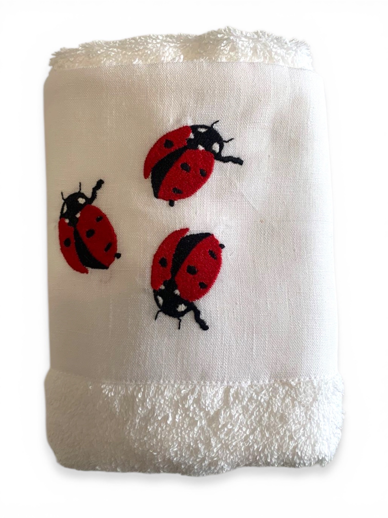 Πετσέτα χεριών από απαλό και απορροφητικό ύφασμα, ιδανική για καθημερινή χρήση. Είναι διακοσμημένη με κεντημένες πασχαλίτσες, προσθέτοντας μια χαριτωμένη και κομψή πινελιά. Συνοδεύεται από προσεγμένη συσκευασία δώρου, καθιστώντας την μια όμορφη και πρακτική επιλογή για δώρο!