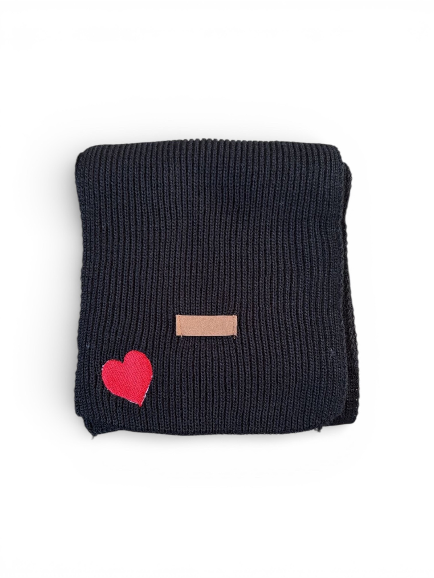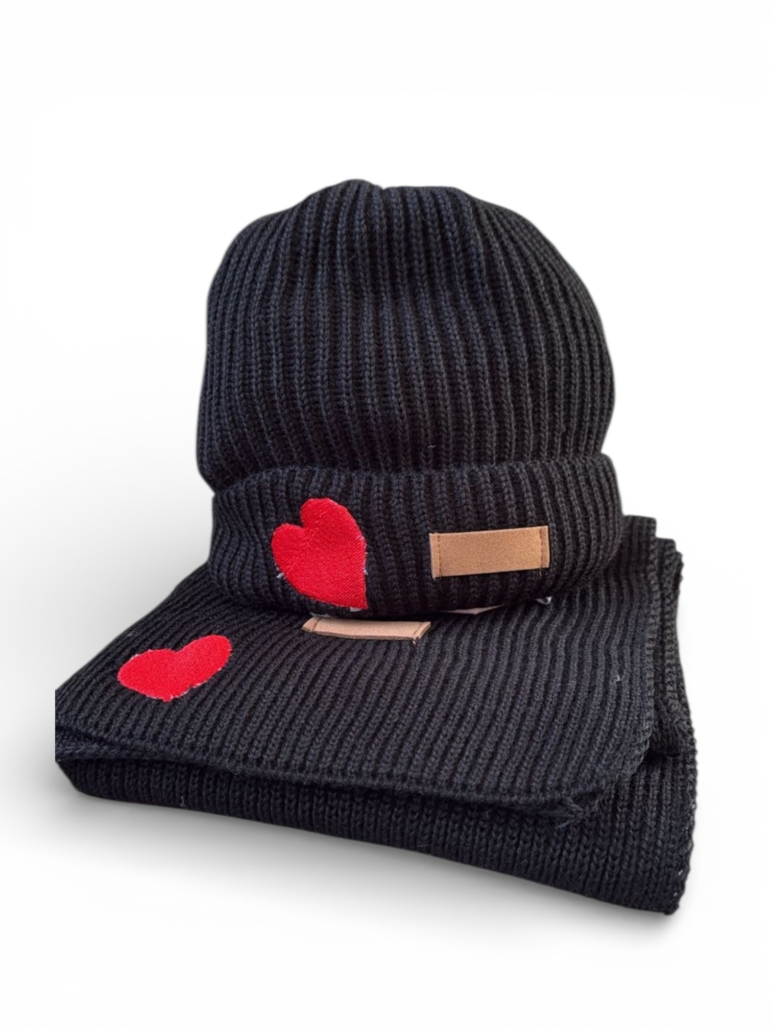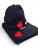 Σετ Κασκόλ-Σκούφος-Γάντια σε μαύρο χρώμα.  Γράψτε το όνομα που επιθυμείτε με μπορντώ κέντημα ή κεντήστε μία κόκκινη καρδιά για το αγαπημένο σας πρόσωπο.
